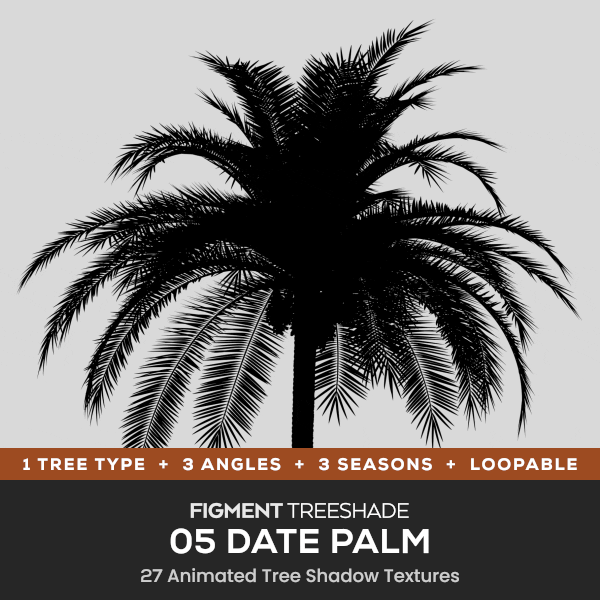 FIGMENT TREESHADE - 05 DATE PALM is an animated tree shadow texture collection for use in animation and VFX.