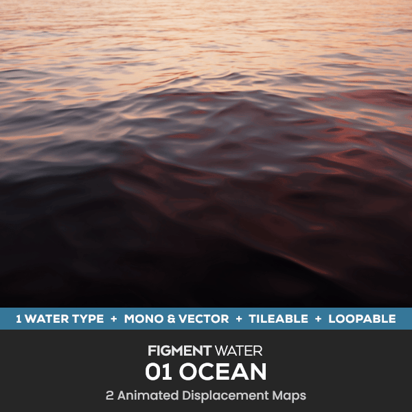 FIGMENT WATER - 01 OCEAN is two animated displacement maps, designed for small-scale water in 3D animation and VFX.