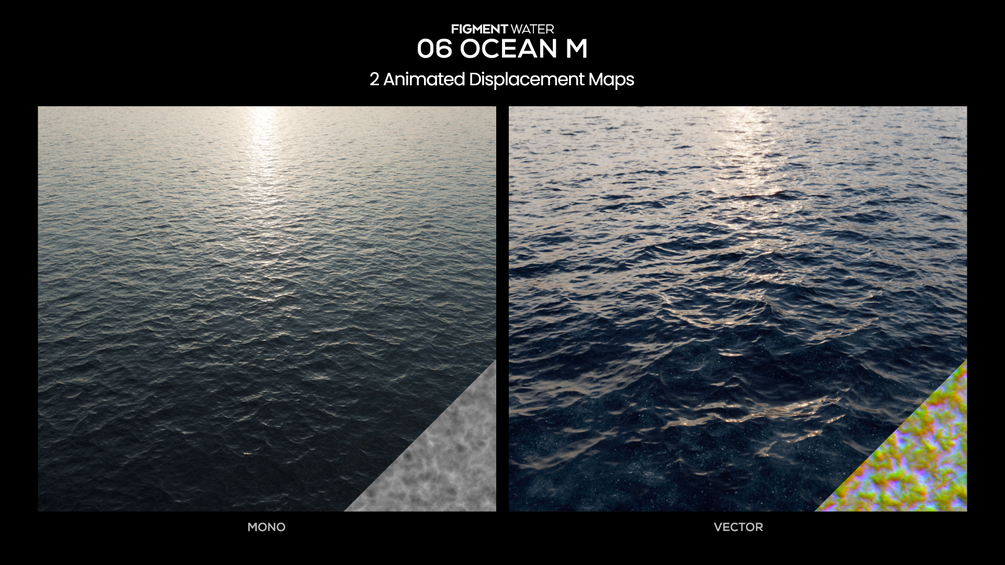 FIGMENT WATER - 06 OCEAN M is two animated displacement maps, designed for medium-scale water in 3D animation and VFX.