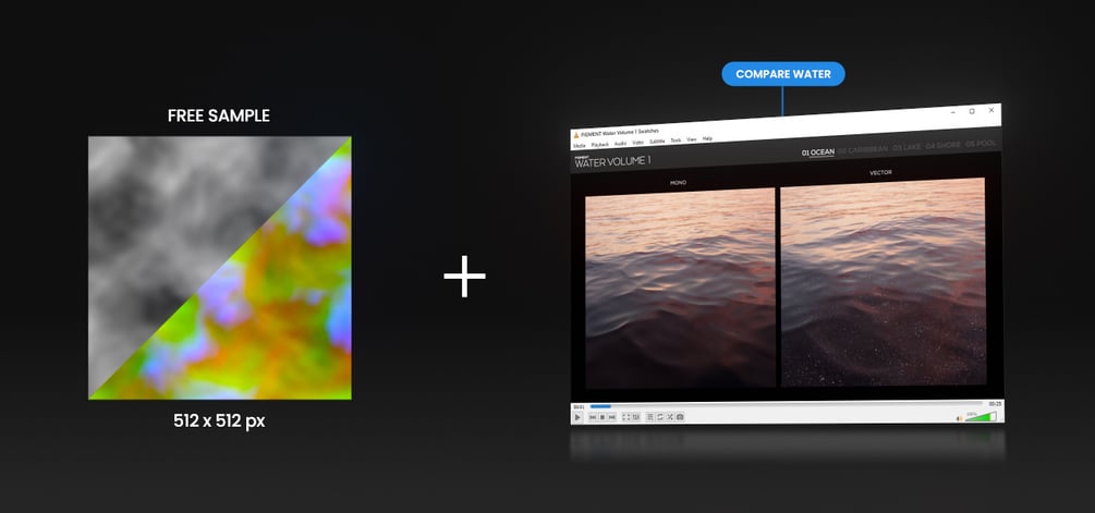 FIGMENT WATER VOL 1 - FREE SAMPLE (02 CARIBBEAN) is an animated displacement map, designed for small-scale water in 3D animation and VFX.